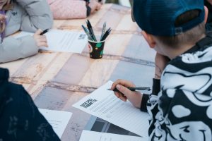 murmeln sie, zeichnen noch ein Pferd und noch ein Alien, dann kommt der Bus.